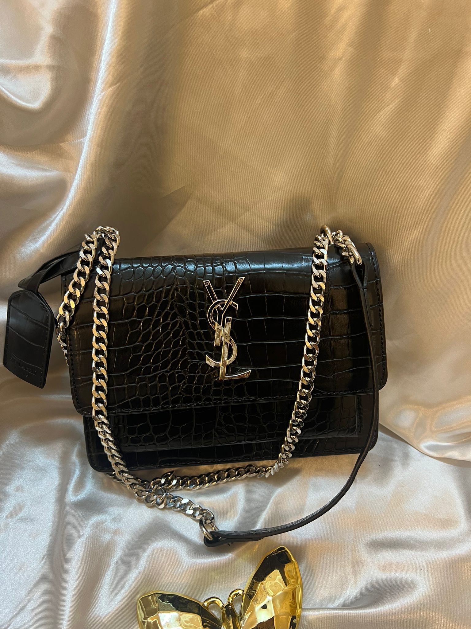 حقيبة سان لوران لون اسود جلد تمساج