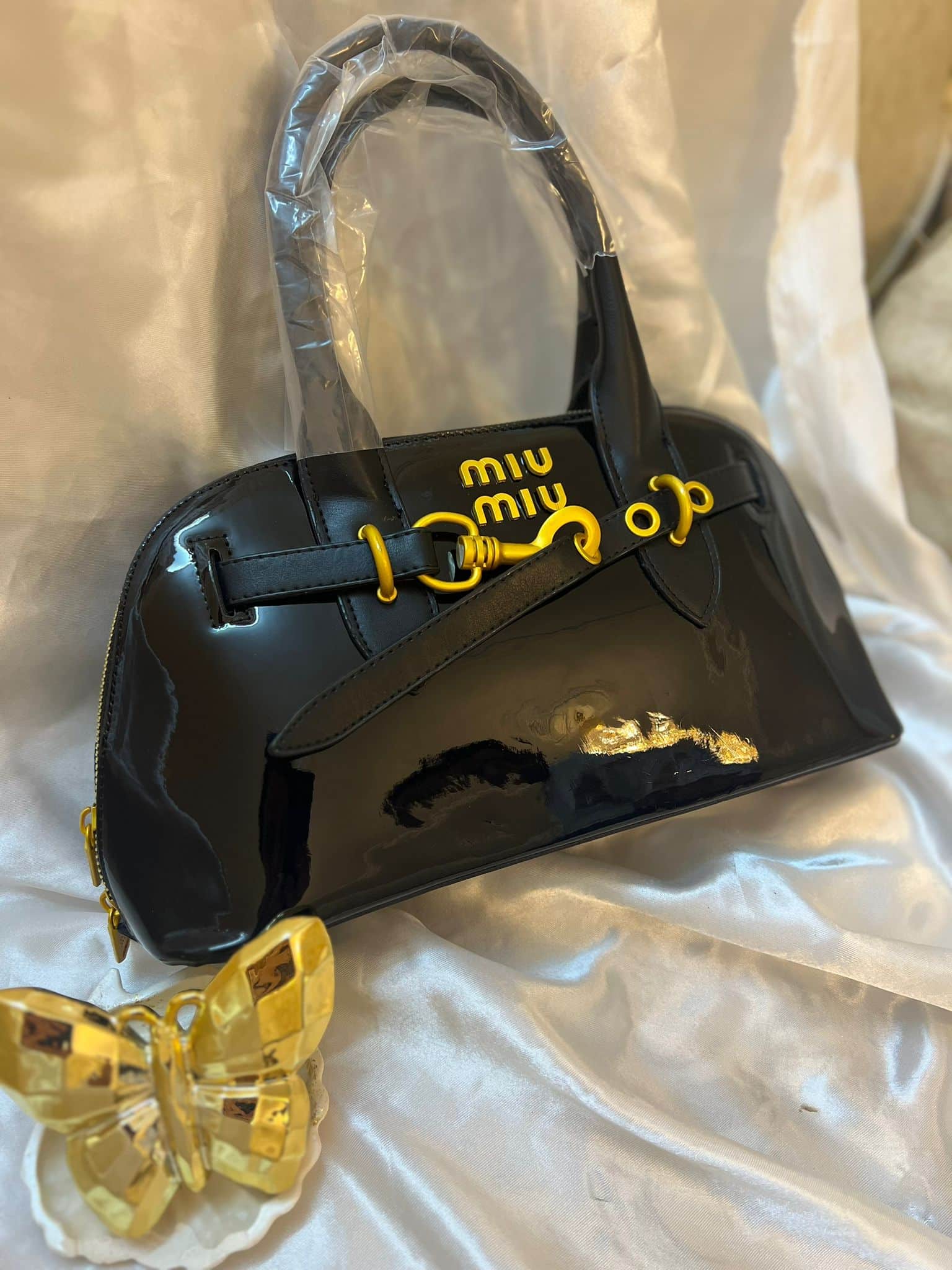 حقيبة ميو ميو لميع لون اسود حجم كبير