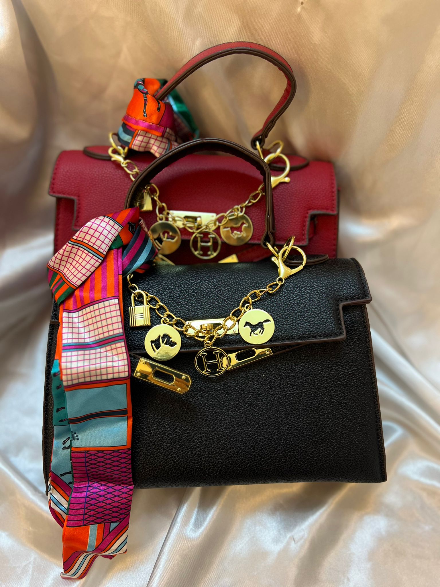 حقيبة هيرمز لون اسود مع اكسسوار وسكارف